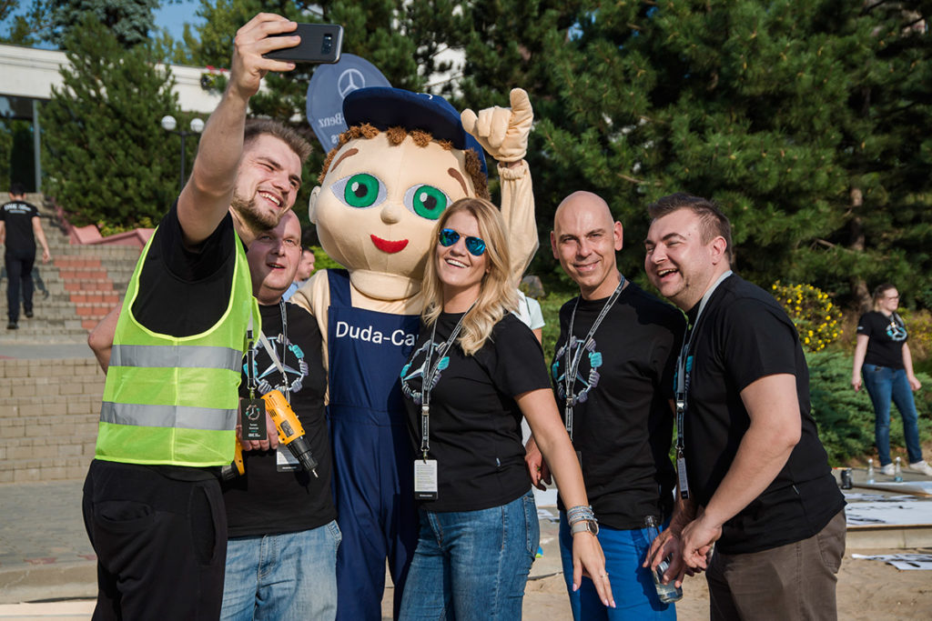 Dziękujemy za przeczytanie powyższego artykułu. Jesteśmy dumni z zaproszenia do współpracy przez firmę Duda-Cars Mercedes-Benz i trzymamy kciuki za dalszy rozwój firmy. Realizacja, którą opisujemy, odbyła się w Hotelu Sułkowski w Boszkowie we wrześniu 2017 roku. Jeśli chciałbyś wspólnie z nami przygotować niebanalną integrację, z przyjemnością podejmiemy się niemal każdego zadania, które na etapie pomysłu wydaje się niewiarygodne – tak jak skuteczna integracja dla 250 osób i budowa realnych rozmiarów konstrukcji w ciągu kilku godzin. Porozmawiajmy o Twoim wyjątkowym evencie integracyjnym..